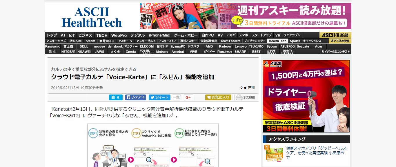 【Voice-Karte】のヴァーチャルな『ふせん』機能のリリース配信後、週間アスキーさんに記事を掲載して頂けました。